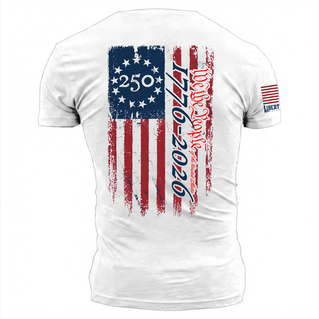 Liberty Load has designed the 1776 - 2026 America 250 Men's Tee to mark a quarter-millennium of the Great Experiment. Empires rise and fall, but the American Republic still stands because of three simple words: We The People. That legacy of resilience is within you - Celebrate It.