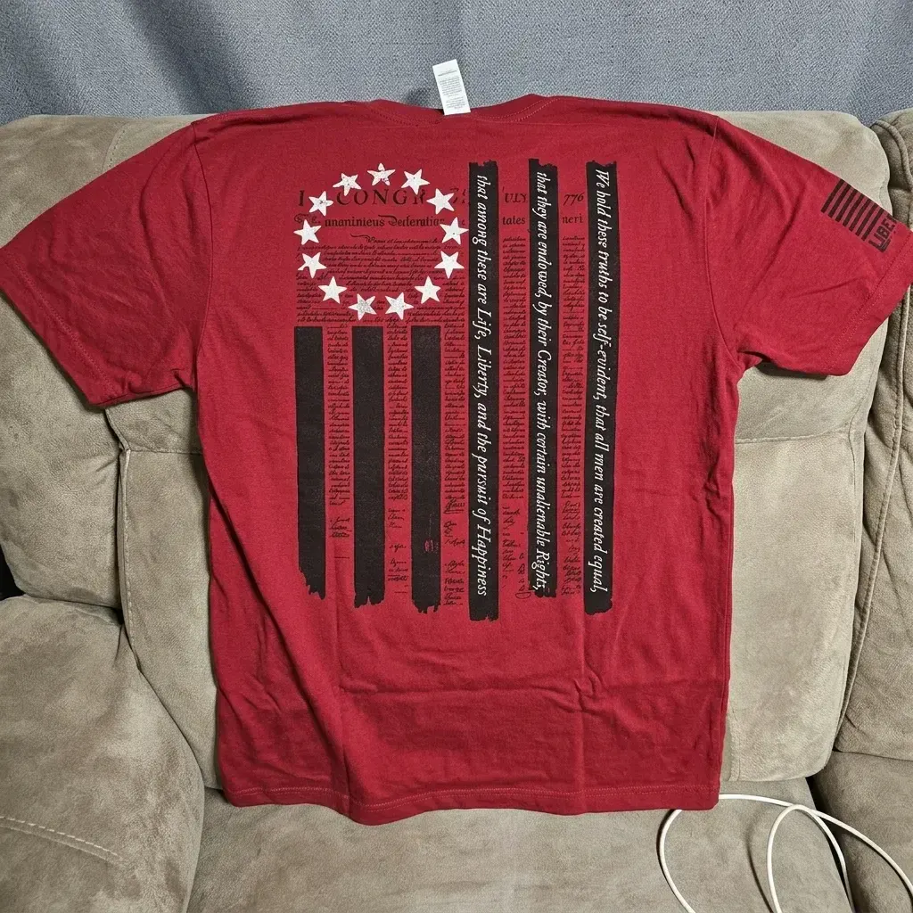 Good Shirt. Fits me perfect. Been washed several times now and no shrinkage, AndThis We'll Defend. I started buying all my clothing from Libertyload, But straight from their site.